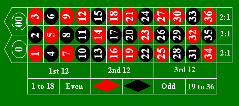 Hieronder zie je de roulettetafel die wij in dit spel zullen gebruiken.